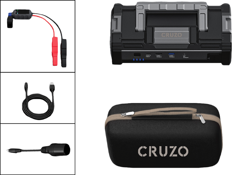 תכולת הערכה: בוסטר התנעה, כבל התנעה חכם, כבל טעינה, כבל מתאם בין חיבור DC לשקע מצת רכב 12V, חוברת הוראות.