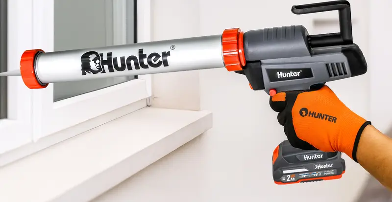 אקדח סיכה נטען 18V מקצועי - אקדח הסיכה הנטען של Hunter מספק כוח רב ונוחות מרבית לעבודות איטום ומילוי. הפעלה על סוללת ליתיום 18V מאפשרת חופש תנועה מוחלט ללא תלות בחשמל.